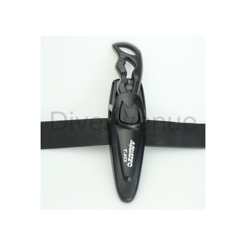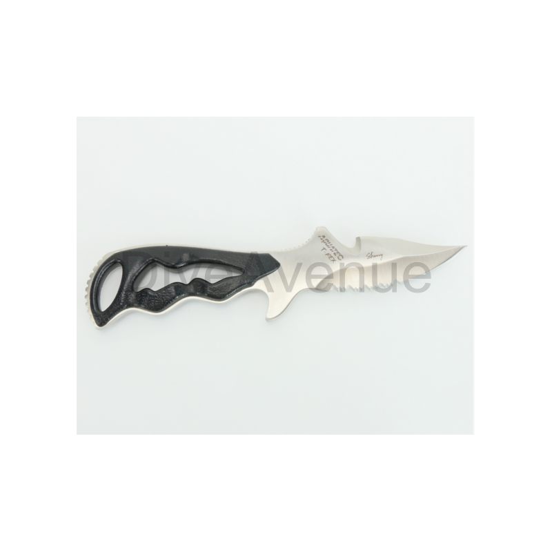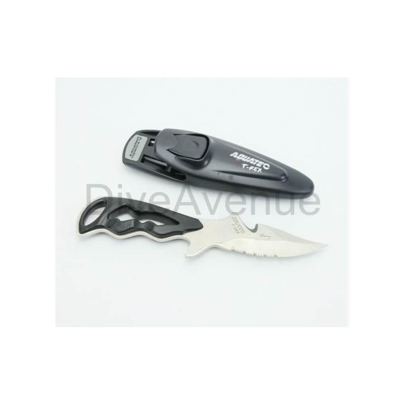 The dive knife AQUATEC T-Rex in is stainless steel version is the ideal knife for divers. It is very compact (200mm x 40mm) and its hode holder can be fix with BC mount or on a regulator hose with the included fixing sytem.