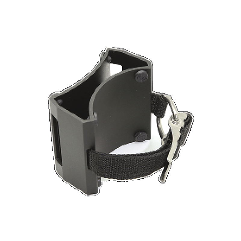 It has a softband strap to fix around the deco tank. The bracket has to be fixed on the diver's tank with the tank band of the SBC or wing.