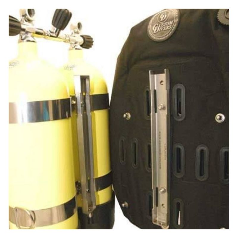 Discover the CUSTOM DIVERS rapid dive cylinder assembler, an innovative solution for attaching your wing to a twin-bottle system or a single-bottle configuration. This versatile assembler can also be used to easily add a spare bottle, improving the safety and flexibility of your diving equipment.