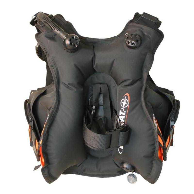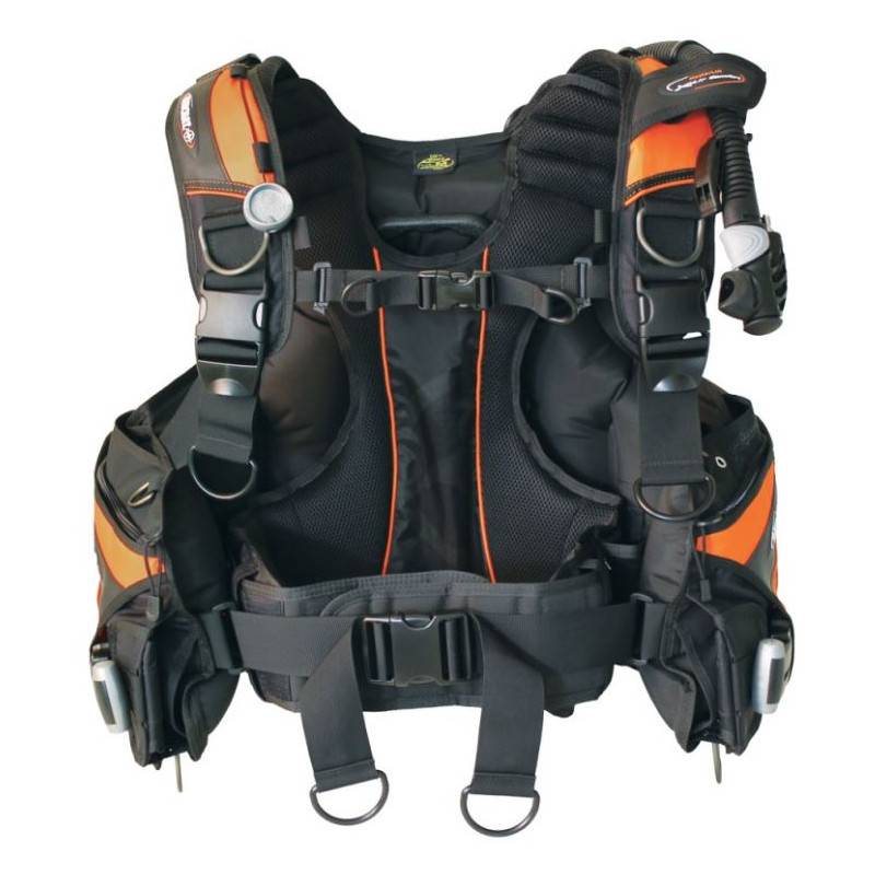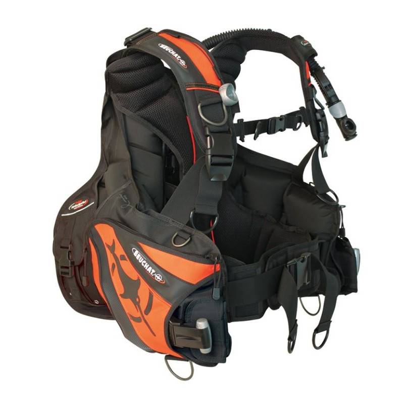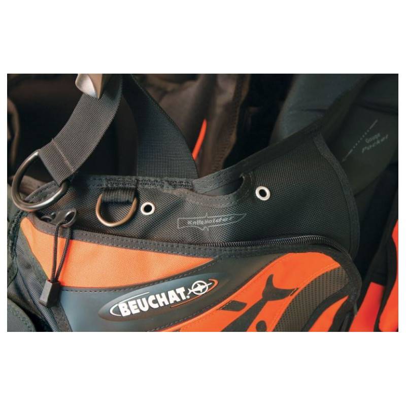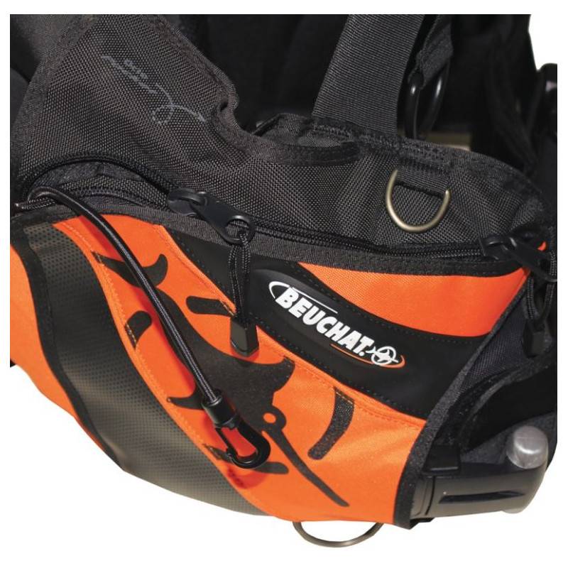 Finally, this beuchat waistcoat has a specific place for the octopus, the pressure gauge and the knife with 2 integrated 5 kg ballast pockets and 2 fixed 2.5 kg ballast pockets on the back gussets and 2 large gusseted pockets, double zip and elastic cord with clip inside to secure the equipment