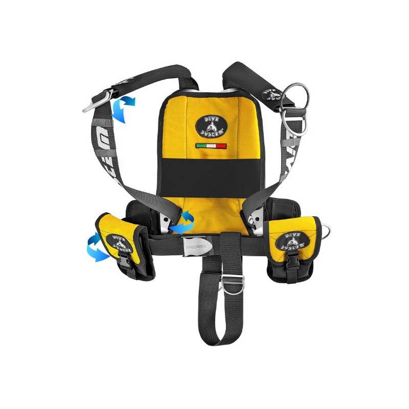 - Single strap sliding harness (adjustable even when stab is worn).