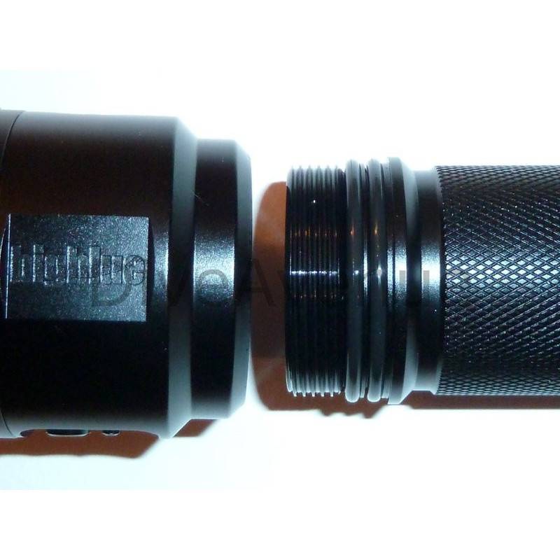 From a technical point of view, the TL3800P is a concentrate of technology. Variable intensity of 380 to 3800 Lumens giving it a range of 1.5h to 15h. In addition to the power variation, the pushbutton also offers an SOS function. Around the push button of the diving light, a colored visual indicator (blue, green and red) gives you an indication of the battery level. This LED dive light is entirely machined from anodized marine anti-corrosion aluminum. The seal is provided by two O-rings between the head and the body of the headlight.