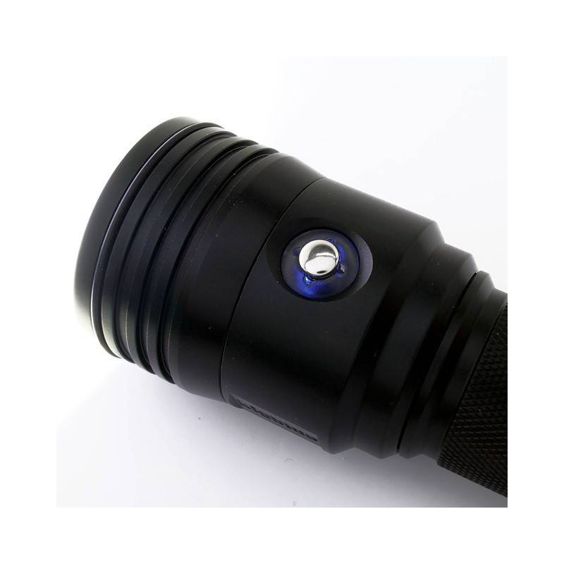 With regard to embedded energy, the VTL3800P includes a solid 32650 Li-ion battery with a capacity of 7Ah. It has been increased by almost 30% this year. To recharge it, simply unscrew the back of the BIGBLUE VLT3800P headlight to access the battery and recharge it. The VTL 3800P is equipped with a 110V / 220V automatic charger that will delight the traveling divers. The end of charge indication is indicated by a green led.