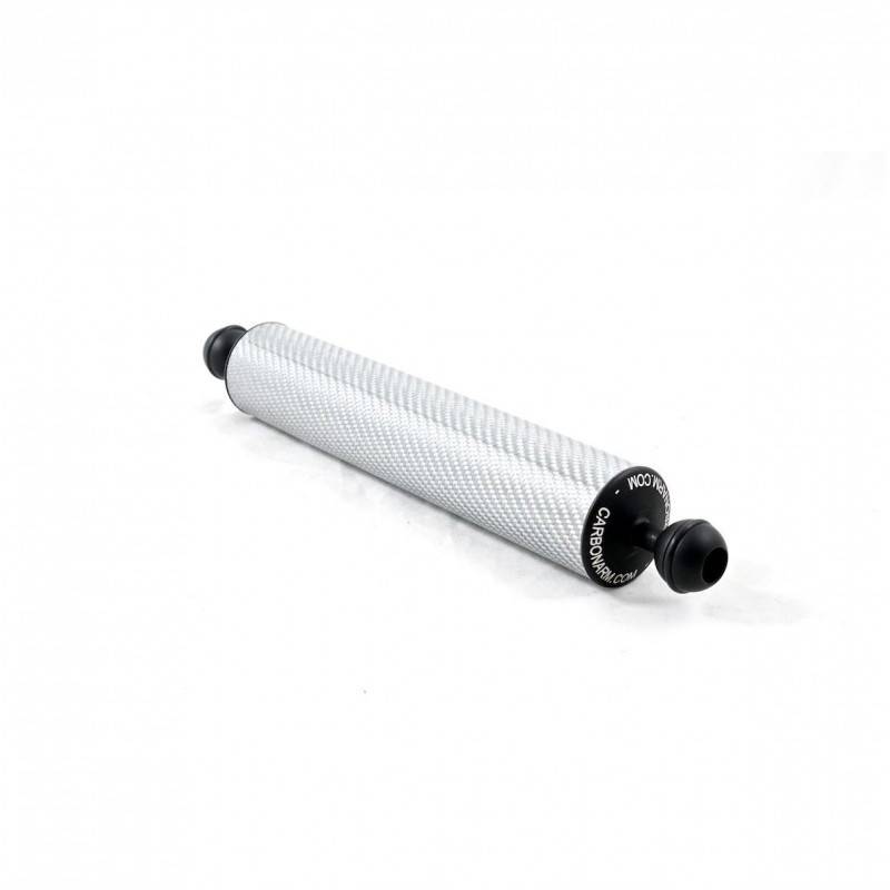 This is a carbon fiber arm, silver version. Complete with 2 anticorodal aluminium (40 micron anodised) end joints to ensure maximum durability and excellent resistance to wear and seawater. This arm helps to compensate for the negativity in the water of the lights, flash and housings.