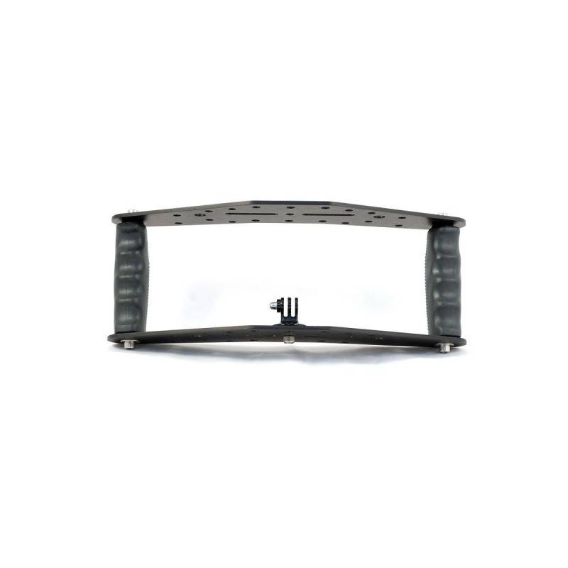 Double support made of anticorodal anodised aluminium with specific holes for handles, cabinet mountings and central adapter for GoPro. The support is completed by two handles for easy transport and a second support.