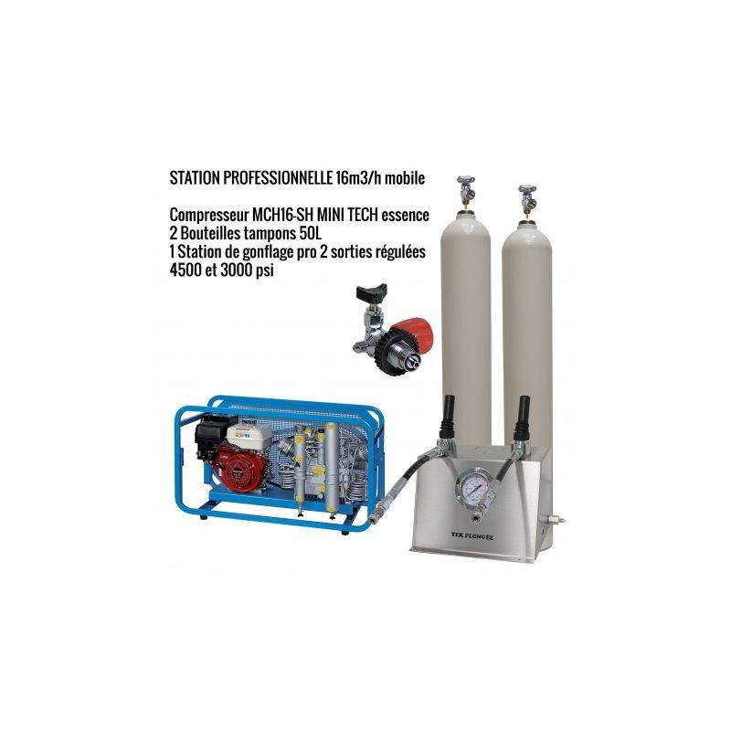 - 1 professional stainless steel inflation station with 2 regulated outputs (1 output 4500 psi and 1 output 3000 psi). Possibility to have 2 outputs 3000 psi