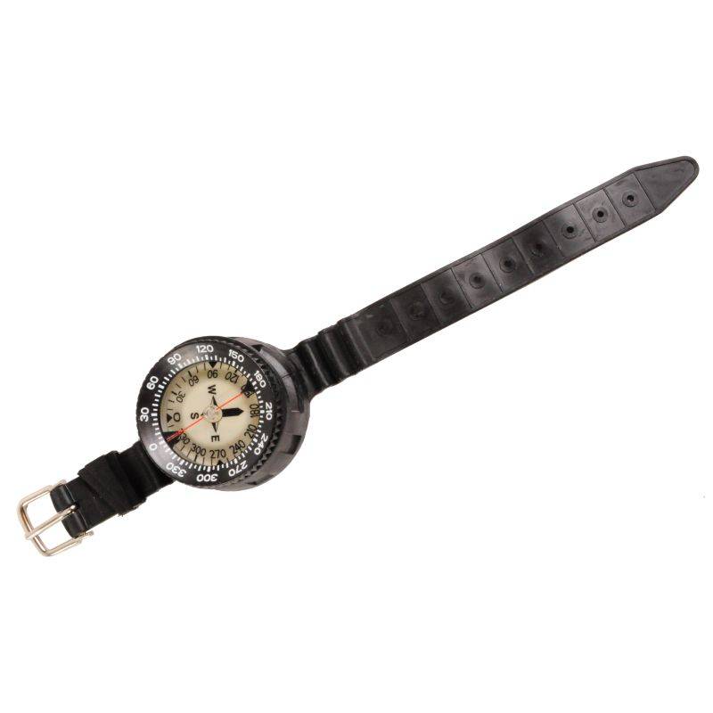The scuba compass is sold with its adjustable bracelet and made by plastic injection.