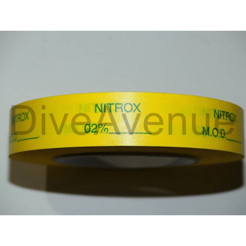 This sticker valve tape indicates clearly the term "Nitrox". It is also possible to write on it the pourcentage of Oxygen in the mix.