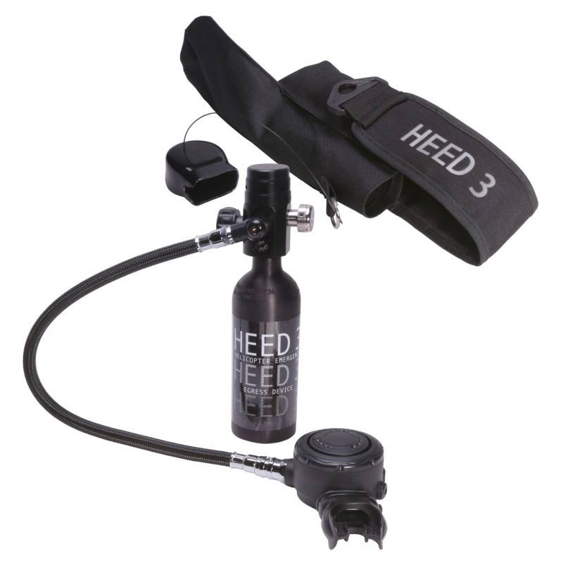 The SPARE AIR HEED 3 kit is one of the most widespread safety elements on racing boats, for shore work, for helicopter pilots... not cumbersome and easy to transport, it slips naturally into the equipment; it allows, in case of "involuntary" immersion, to be able to count on an independent air source, and to calmly attempt a safe return to the surface from a shallow depth... It does not require any handling to be triggered, and must always be "ready to use" when going diving, or when working in an area where there is a risk of accidental fall into the water. It must therefore be inflated at all times.