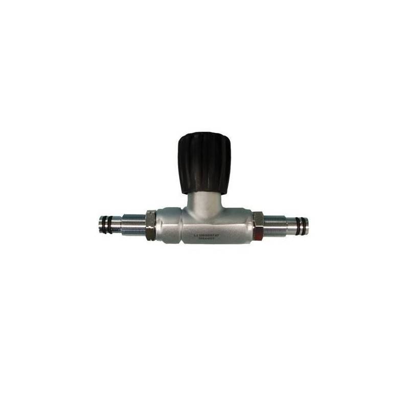 Isolation manifold for bi-diving tanks to be screwed into the right and left valves.