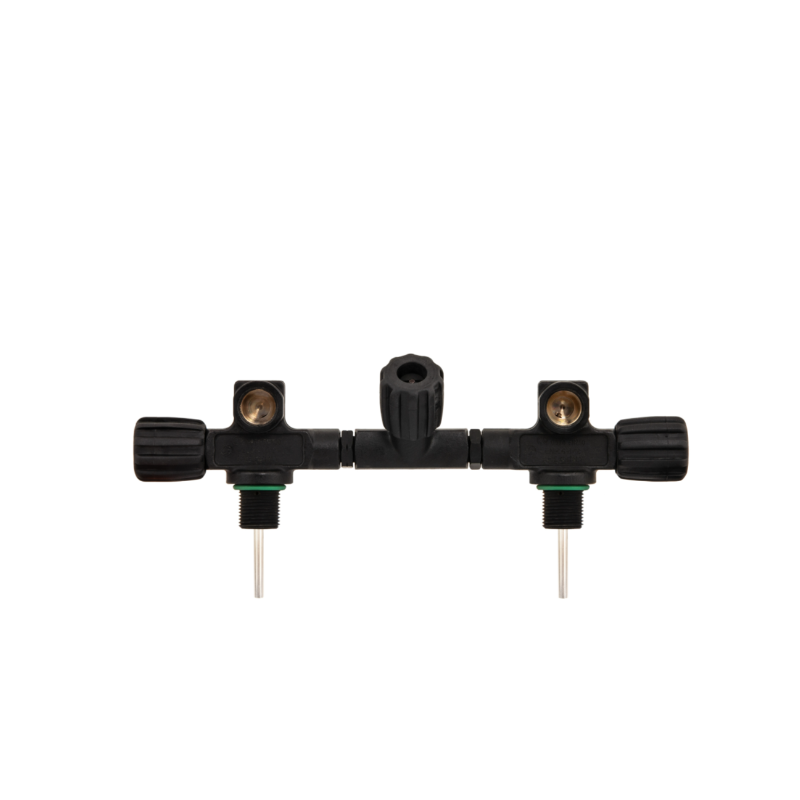 The system comprises two right/left valves interconnected by an isolator, essential for assembling a twinset.