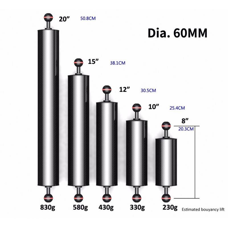 DIVEPRO carbon floating arms offer a wide range of lengths and associated buoyancies.