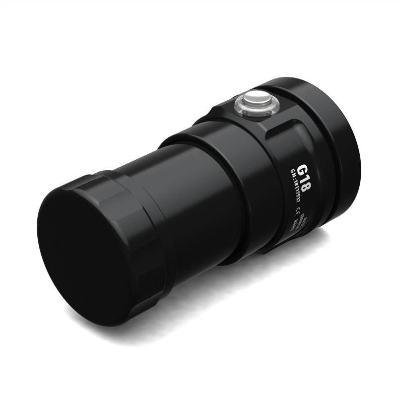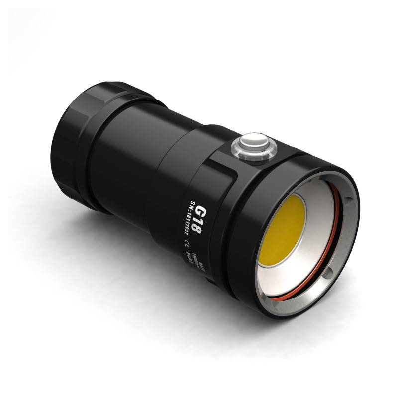 Waterproof to 100m, the DIVEPRO G18 exploration dive lamp is very compact with 123mm long and 65mm in diameter at the front, 51mm at its central