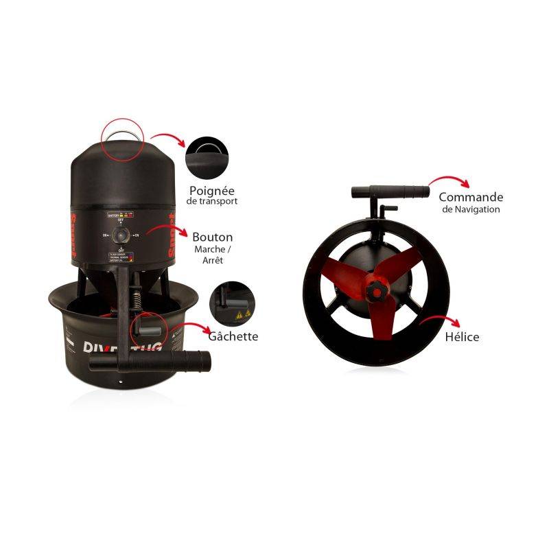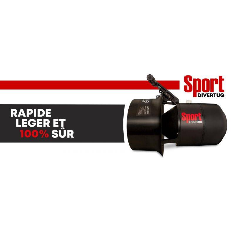 The DPV (Diver Propulsion Vehicle) SPORT Divertug allows the diver to have 60min of autonomy in fast speed and 90min of autonomy in slow speed thanks to its 12V Lithium battery.