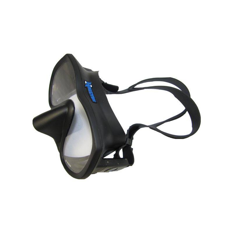 The H-View mask is a simple yet robust diving mask featuring a black frame and a soft silicone skirt that surrounds a single lens, creating a low-volume mask for easy cleaning.