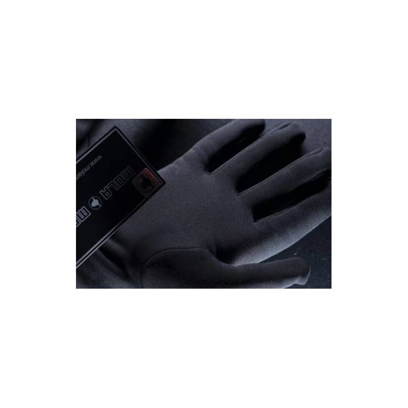 The material from which the gloves were made is a high-quality fleece knit with very good thermal insulation properties. Due to its dense structure, it provides excellent insulation against wind and cold, and maintains a dry and warm microclimate of the skin. It has hydrophobic properties, i.e. it does not retain moisture in an amount greater than 1% of its weight, thanks to which the knitted fabric is always dry and soft to the touch. Microscopic air bags in the structure of the material create thermal insulation, retaining body heat. Sweat released during exercise is absorbed by the inner layer of the knitted fabric, while the outer layer transports the accumulated moisture away to the environment, thanks to which the skin remains dry and breathes naturally.