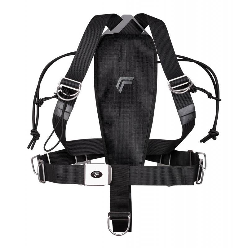 The harness is made using a band 50mm wide and exists in DIR or school mounting with adjustable straps. He has a su-cutale and large belt hooks laterally to fix the bottles.