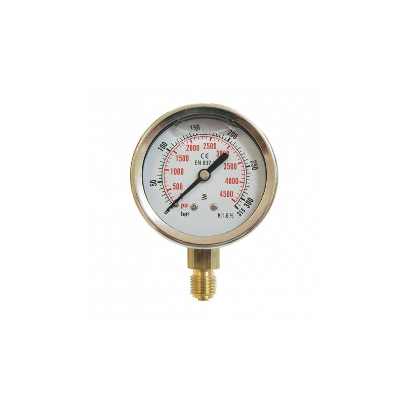 Stainless steel pressure gauge 0-315 bars D63mm vertical connection with glycerine