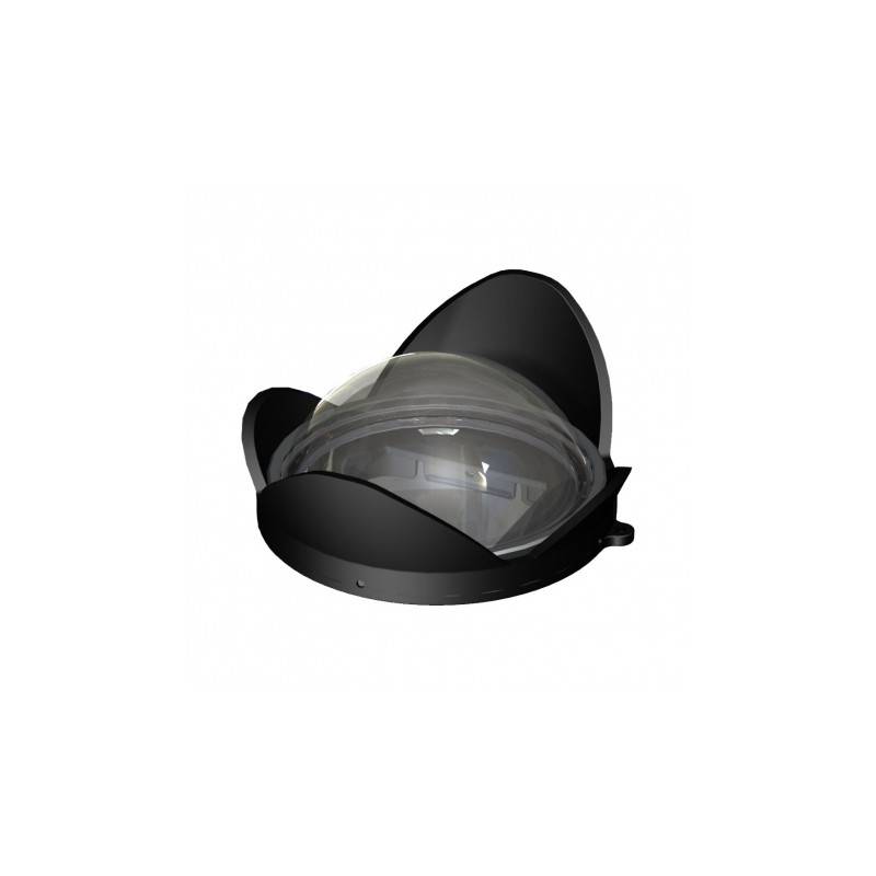 The wide-angle dome therefore allows the original focal length of the camera (terrestrial focal length) to be recovered underwater and can be removed and put back underwater at will.