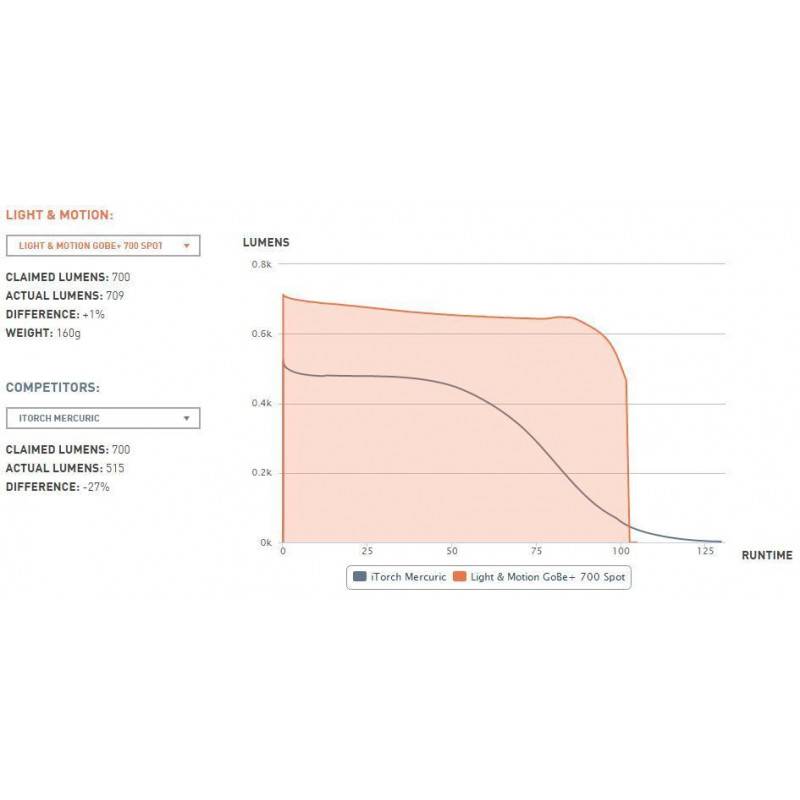 - 1x Light & Motion GoBe body 2.2Ah battery capacity