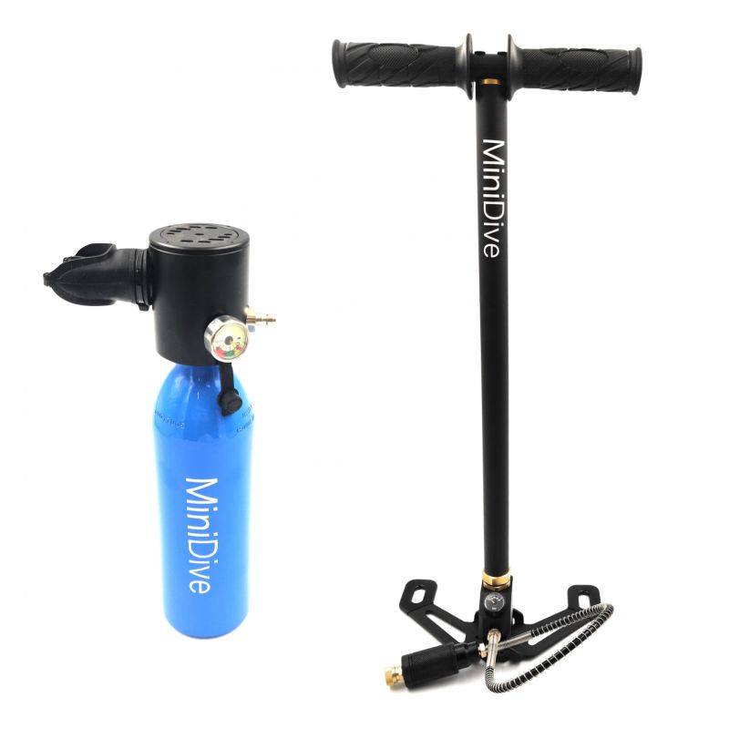 MINIDVE AIR, 0.5L mini scuba tank kit with manual pump.