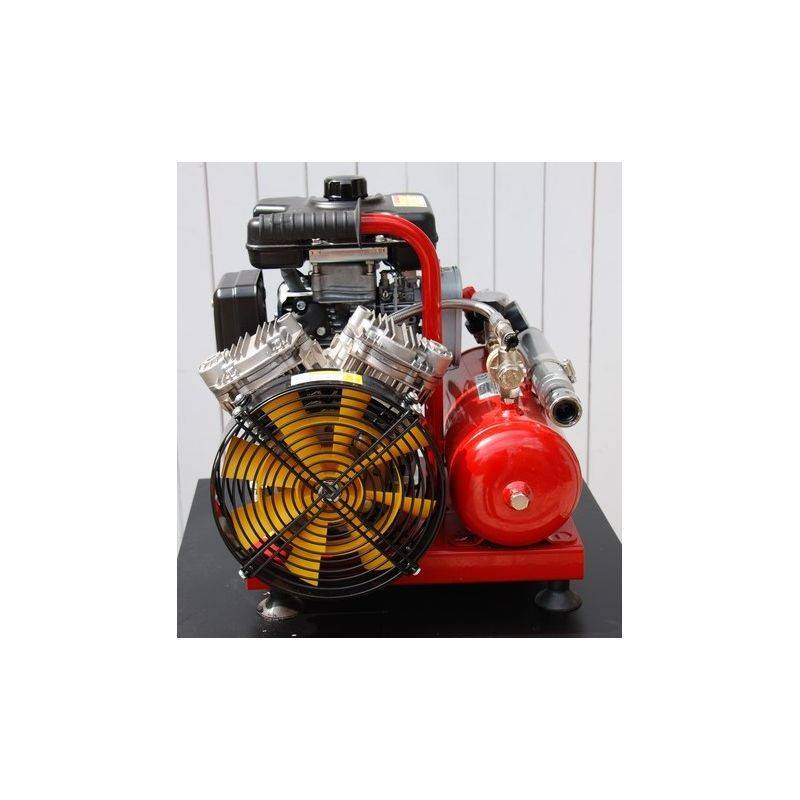 It is equipped with a 7 litre tank serving as a buffer tank, and a Subaru/Robin engine renowned for its robustness. Like all Nardi hookah low pressure compressors, it operates without oil and has air filtration to meet CE standards.