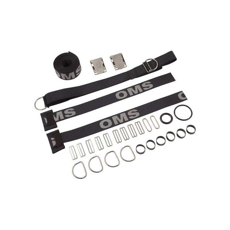 The OMS SLIPSTREAM Harness Kit includes all the elements of the harness such as DIR straps, stainless steel fittings, waist belt, stainless steel buckles, elastic and fittings.