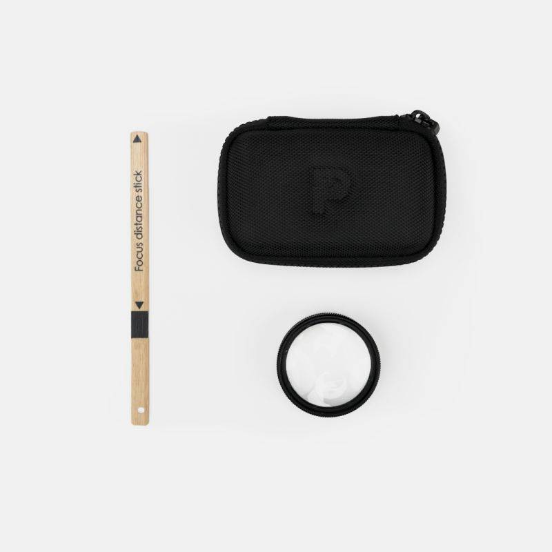 The minimum distance for filming is 10cm, the product includes a bamboo ruler to calibrate the film distance.
