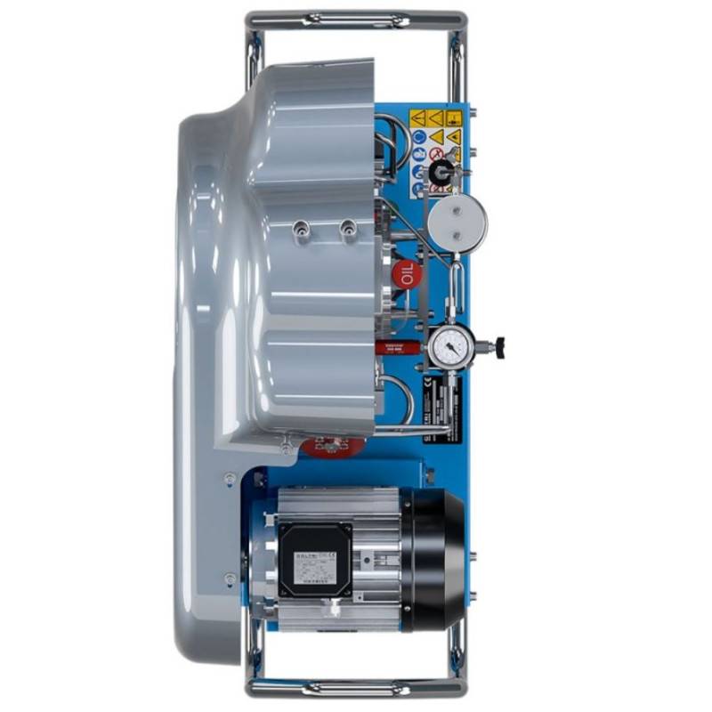 The welded chassis of the SMART range allows for good cooling flow and protects the user. The frame integrates the electric motor, the compression block, the filtration system and 2 flexible outlets with an inflation valve. The epoxy powder coating provides effective protection in hostile environments.