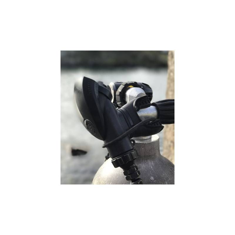 The Xstream second stage has many qualities. It's very light, weighing just 152g. The air escapes through the side of the regulator, giving the diver a bubble-free view. It also has a cover that hides the overpressure valve, which prevents continuous flow in the current. Finally, it is 100% reversible, making it easy to fit left/right for Sidemount diving, for example, or to give air.