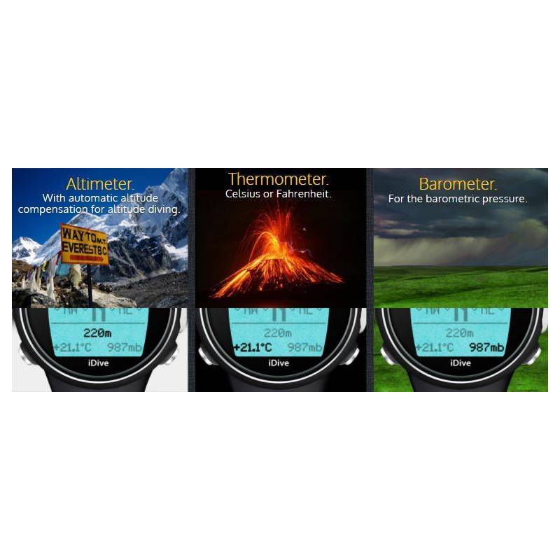 - Dive Modes Air / Nitrox / Gauge / Freedive