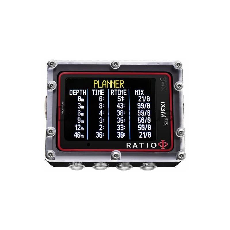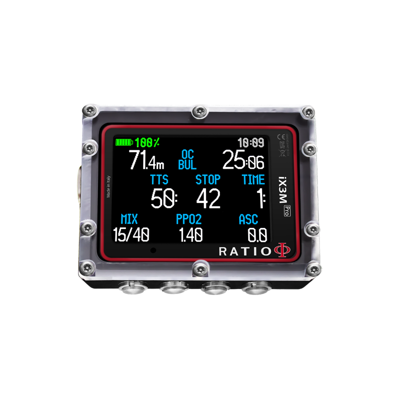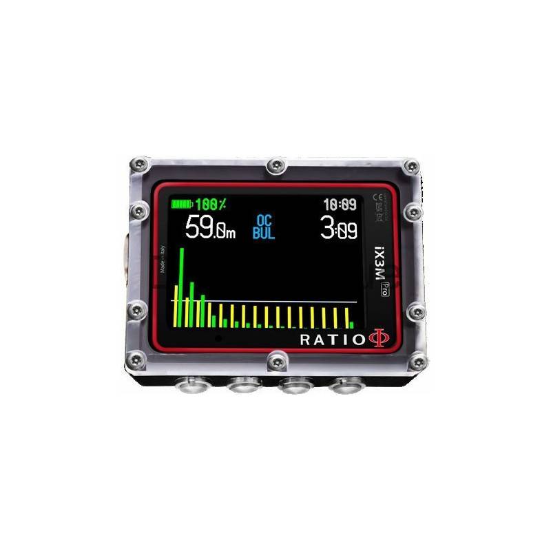 Air/Nitrox dive computer iX3M [Pro]Deep Ratio : The dive computer dedicated to mult-gas diving Air/Nitrox and depth gauge. It is compatible with the Ratio wireless LED-color pressure gauge !
