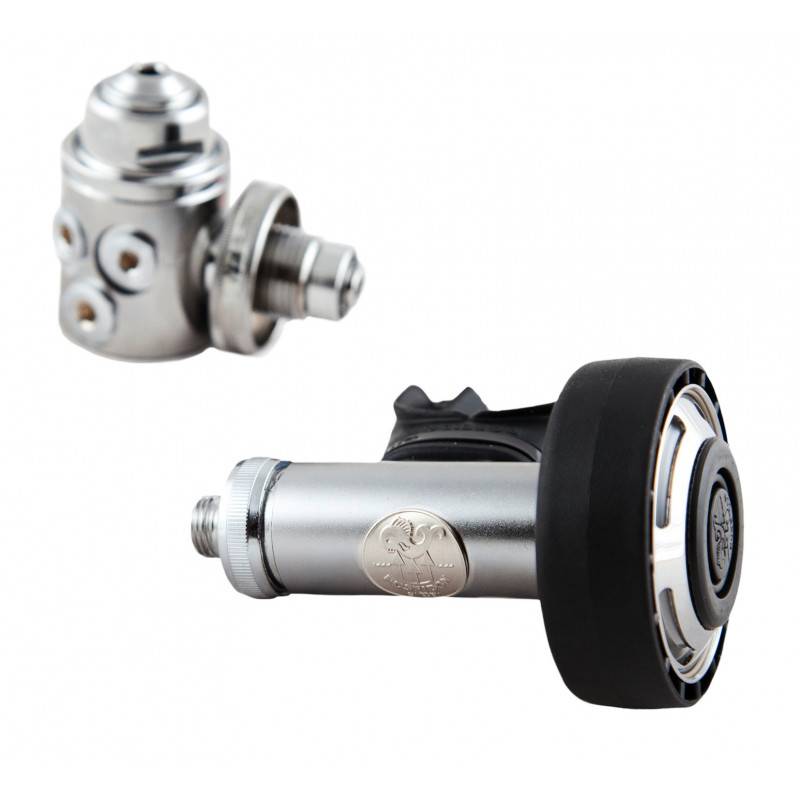 This regulator is very appreciated by sidemount divers because it has the advantage of being reversible left/right by its design.
