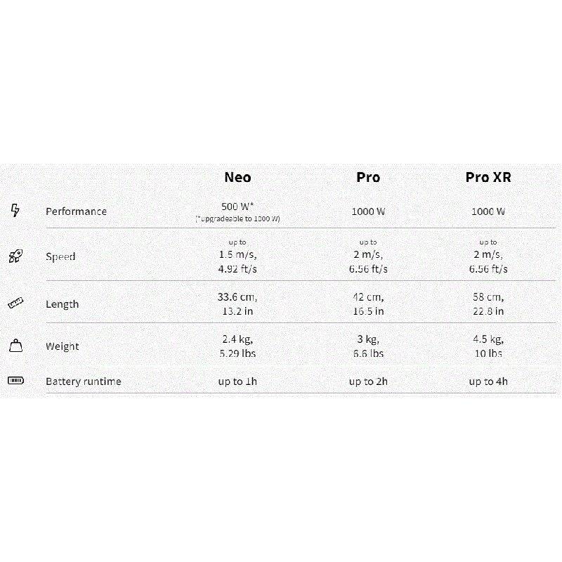The advantage of the SCUBAJET is that it is modular. It is possible to change the body of the device by adding battery modules to increase the autonomy. There are three kits, Neo up to 1h, PRO up to 2h and PRO XR up to 4h.