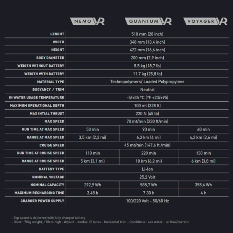 The QUANTUM VR is the most powerful model in the range. Designed for technical divers and deep-water expeditions, it offers unrivalled power, extended autonomy and optimum stability to tackle all underwater conditions.