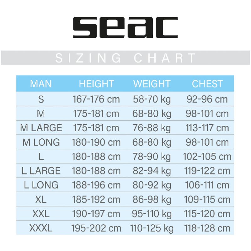 The Seac Space 7 mm wet suit has been designed to provide optimal comfort for divers, guaranteeing warmth, flexibility and freedom of movement, whatever the body type. Made from Ultrastretch neoprene, this one-piece ensures ease of movement and perfect adaptation to body contours, while making donning easy.