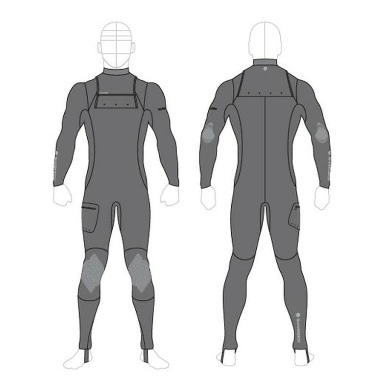 - Chest Zipper: Provides flexibility around the torso, reduces water run-off and adds a stylish aesthetic to the suit.