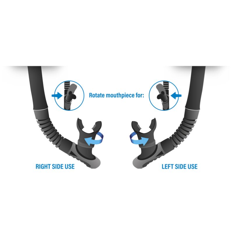 The SEAC Reverse is a versatile, ergonomic snorkel designed to provide a comfortable diving experience.This innovative snorkel features a soft silicone mouthpiece, which can be positioned right or left to suit your personal preferences or the teaching methods you follow.