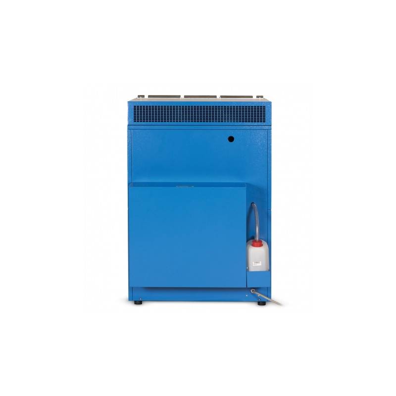 The automatic drain system is equipped with a condensate recovery system with silencers. It avoids the release of oily residues into the environment.