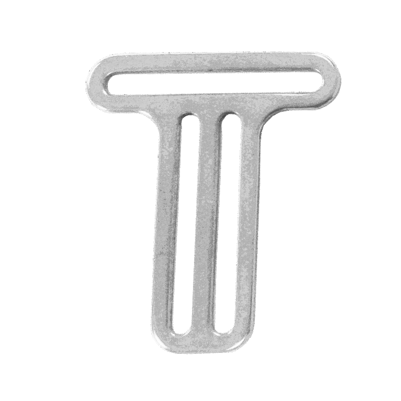 This stainless steel buckle allows to make harnesses. It has a top slot and two lower slots of 51mm width.
