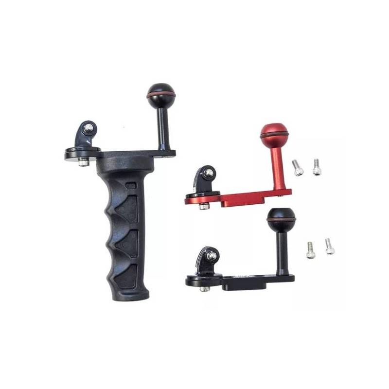 Poignée pour GOPRO ergonomique fournie avec une terminaison à rotule de 25 mm montée directement.
