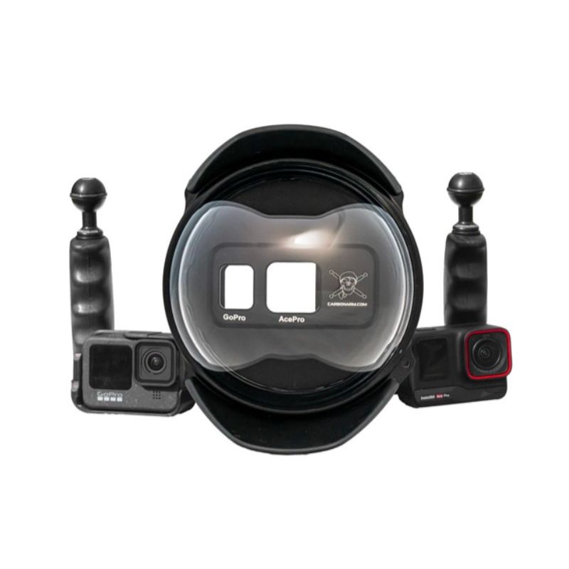 L’ActionDOME Housing Carbonarm est conçu pour être compatible avec plusieurs caméras d’action. Vous pouvez l’utiliser à la fois avec une GoPro et une Insta Ace Pro. Grâce à son adaptateur intégré et ses boutons mécaniques dédiés, vous pouvez facilement interchanger entre les deux caméras. Ce boîtier est aussi compatible avec divers accessoires pour configurer votre setup selon vos besoins.