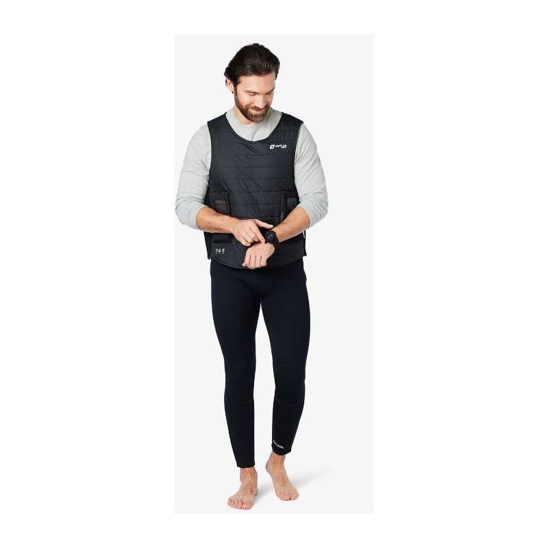 Ce gilet chauffant Venture Heat est contrôlable à l'aide d'une télécommande au poignet, avec retour haptique sur la veste et sur la télécommande pour un contrôle tactile en cas de faible visibilité lors de la plongée ou de l'apnée.