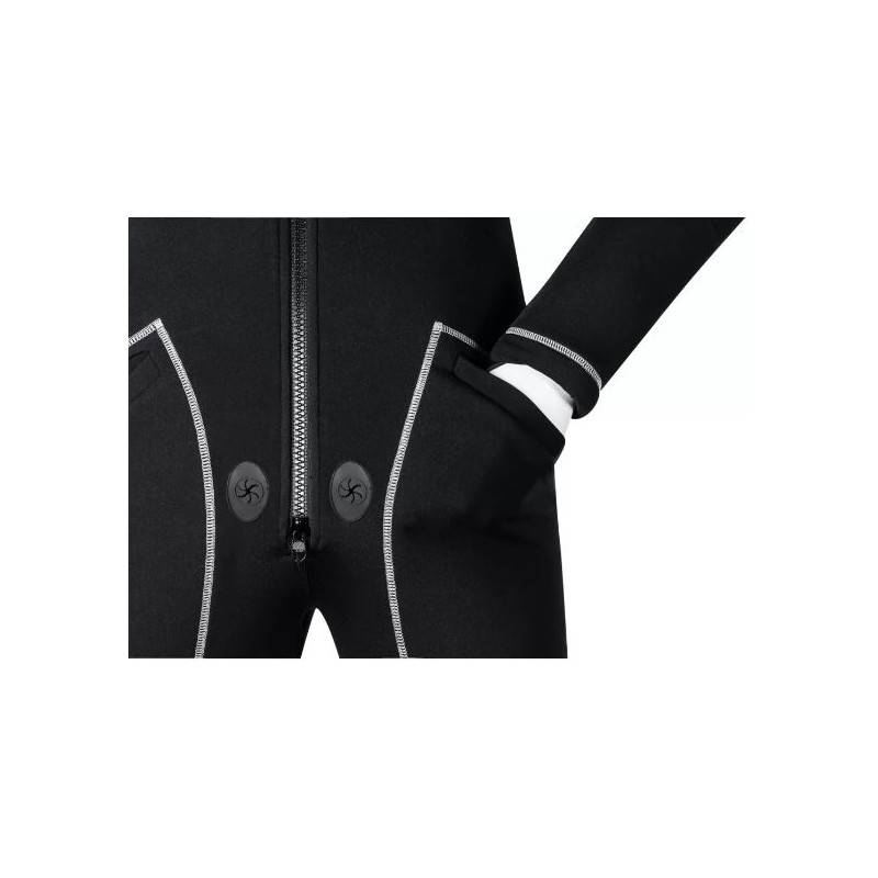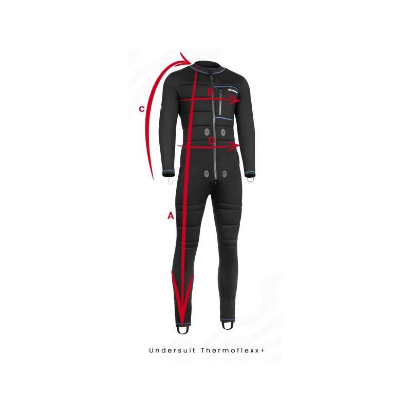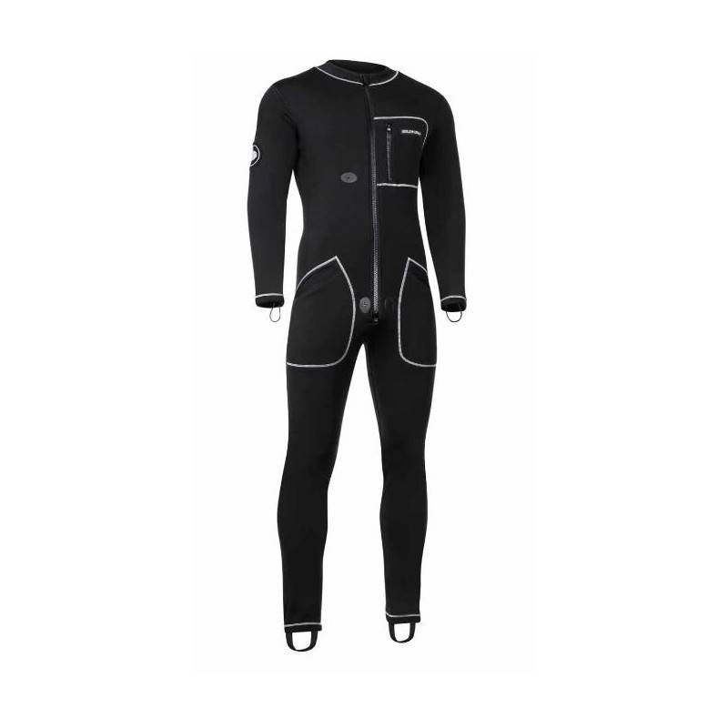 Grâce aux coutures plates et au délicat molleton à l'intérieur du tissu, la sous-combinaison peut être portée directement sur le corps. La couche extérieure en polyester et la conception "easy on-easy off" permettent d'enfiler et d'enlever facilement la combinaison étanche. La technologie de fabrication unique garantit la flexibilité dans toutes les directions, ce qui permet une large gamme de mouvements des bras et des jambes du plongeur.