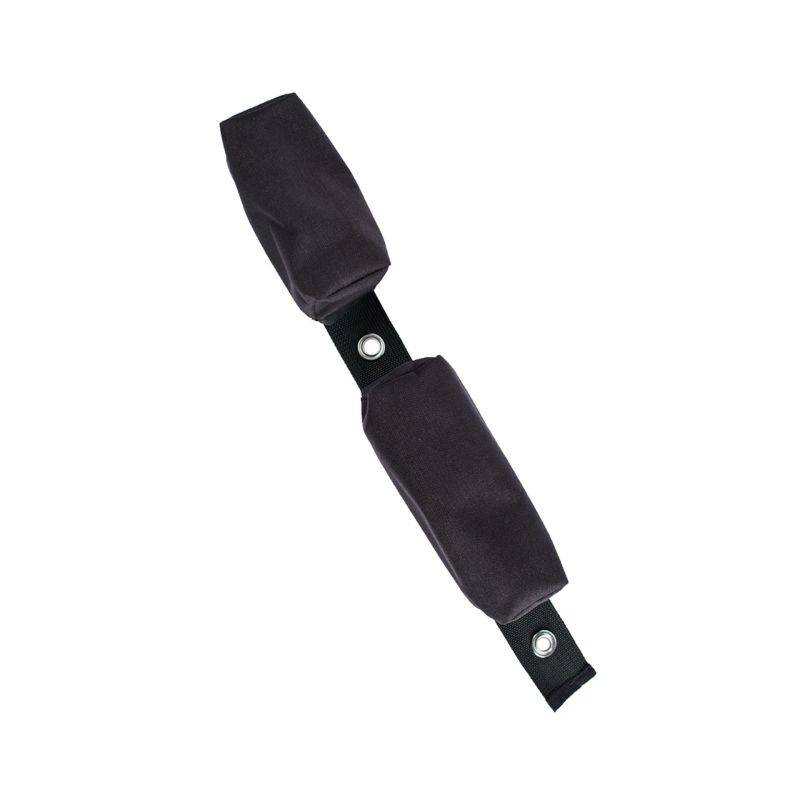 Il y a deux œillets insérés dans la poche qui glissent sur les boulons de la bande de la double bouteille, et cela crée deux poches qui sont maintenues fermées par des rabats en velcro qui se chevauchent. La poche peut contenir jusqu'à 4,4 kg / 10 lbs de poids souple et est le parfait compagnon de voyage du plongeur en bi-bouteille.