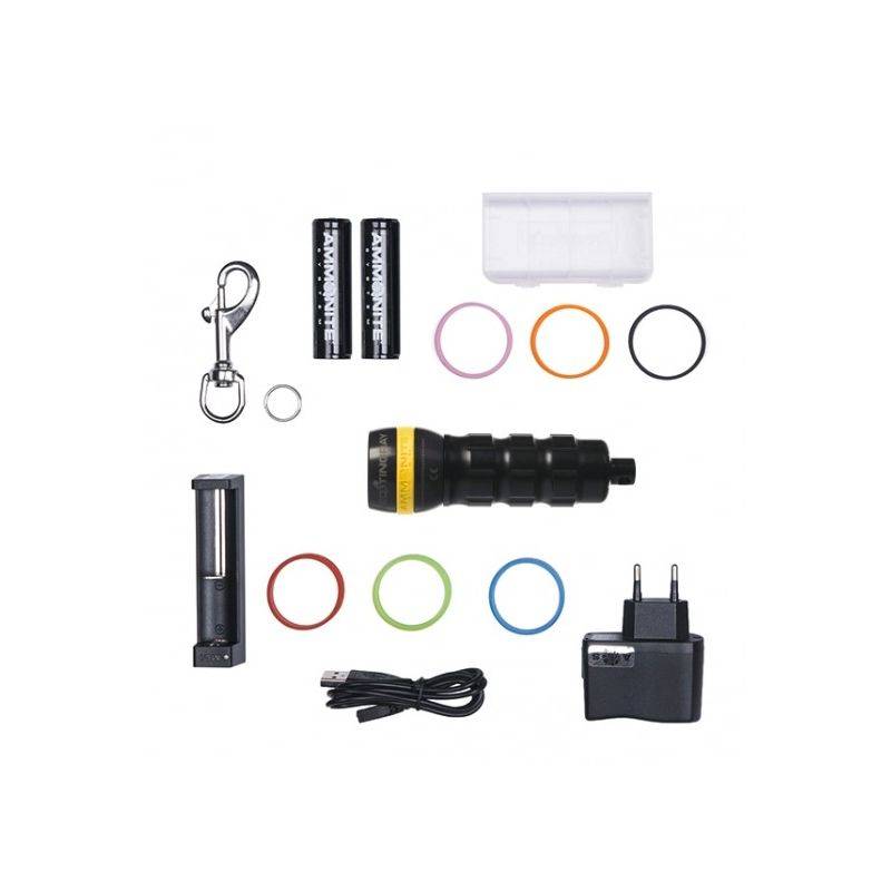 La LED STINGRAY est une torche primaire compacte, robuste et puissante, alimentée par une batterie rechargeable et pouvant atteindre une profondeur de 200 mètres.
