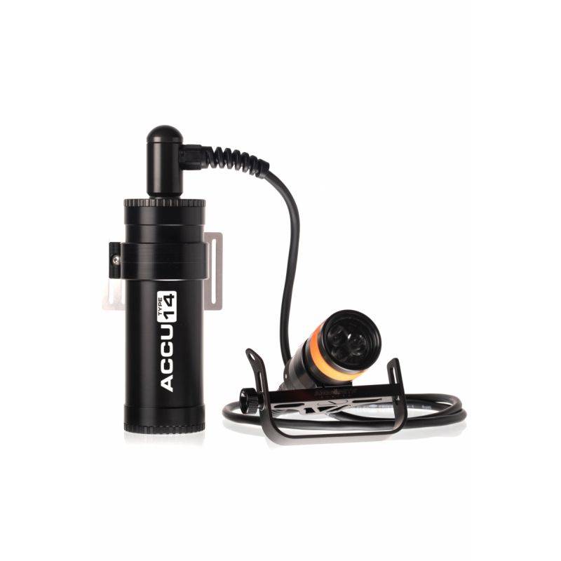 En utilisant Accu Click Mount, la batterie peut être facilement ajoutée comme dernière partie de l'équipement simplement en plaçant la broche de serrage dans une glissière de la plaque en titane et en poussant la batterie vers le bas jusqu'à ce que vous entendiez le déclic.