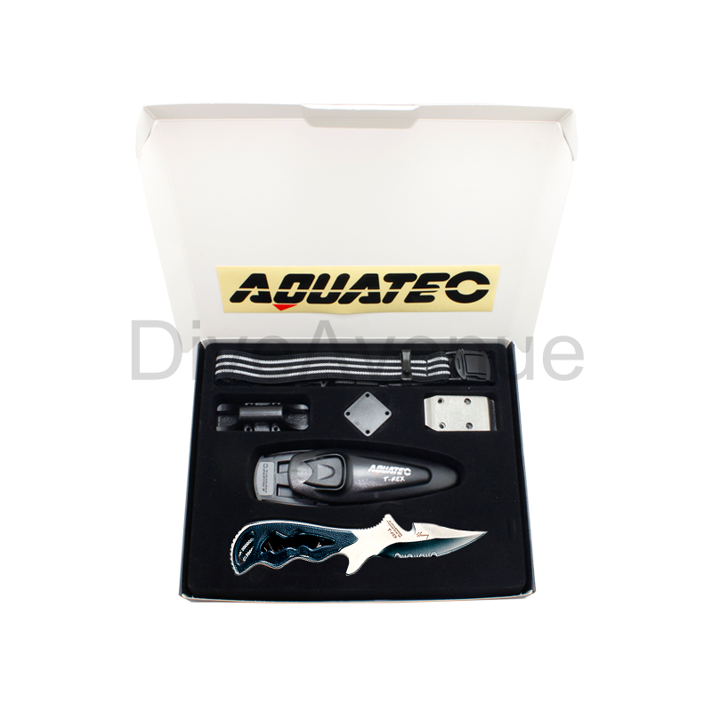 Le couteau AQUATEC T-Rex dans sa version inox correspond au couteau idéal en plongée. Il est très compact (200mm x 40mm de haut), et son étui peut être fixé soit par sangles, soit sur un flexible grâce à l'adaptateur fourni.