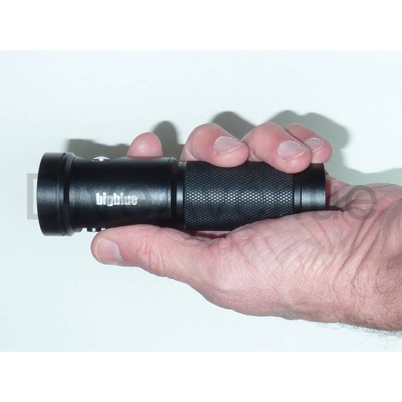 Le phare dispose comme toute la gamme BIGBLUE à LED de 4 niveaux de puissance via son interrupteur magnétique. L'autonomie est de 2h à pleine puissance, jusqu'à 8h. Vous n'avez pas besoin de recharger votre phare entre deux plongées Le phare est livré avec sa batterie rechargeable Lithium-ion mono-élément 26650 et son chargeur automatique 110/220V que vous pourrez emporter en voyage.