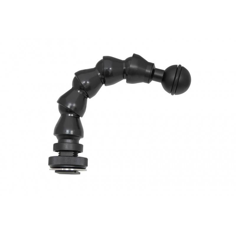 Pour la mise au point avant prise de vue, ce bras se fixera facilement sur votre caisson grâce à sa platine "hot shoe" à visser. Il se termine par une boule de diamètre 25mm gâce à laquelle vous pourrez fixer votre phare Bigblue.